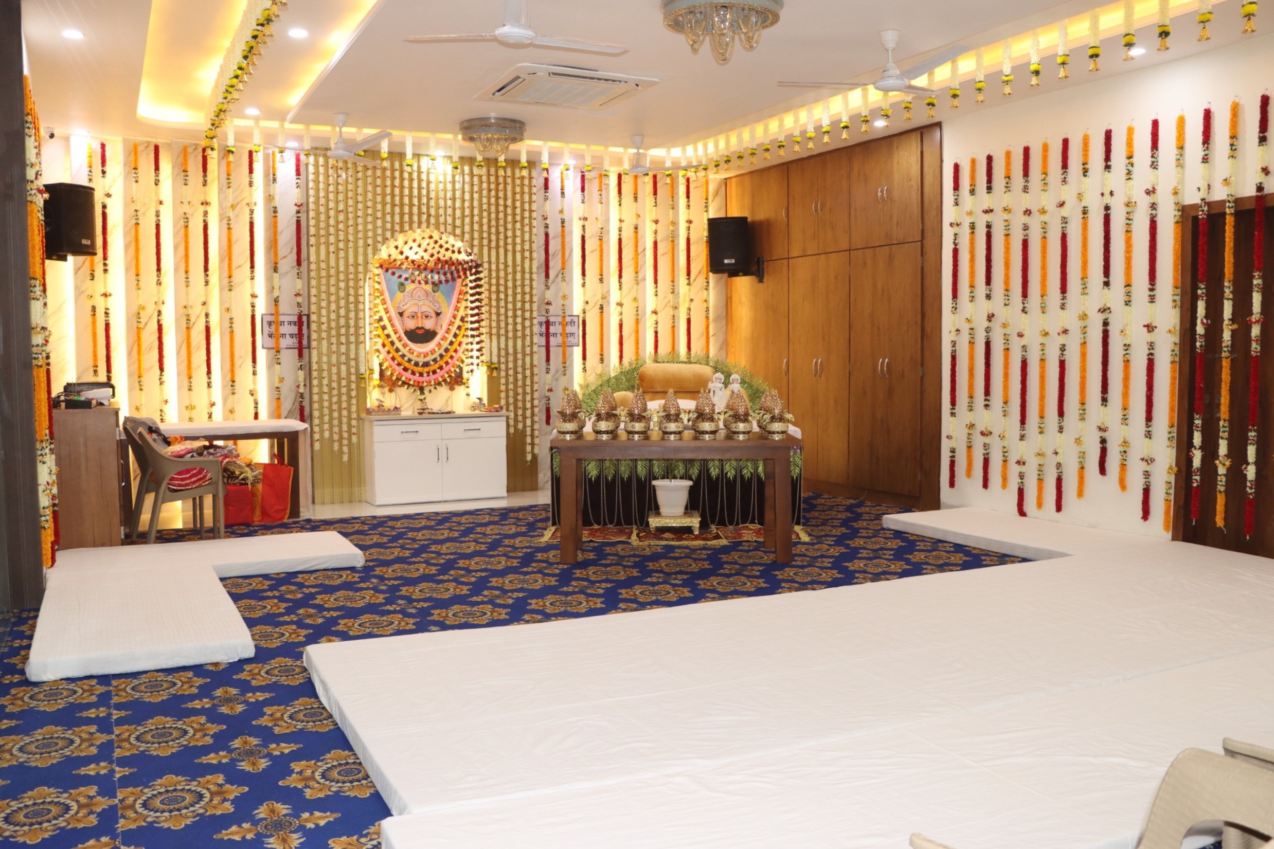 The property boasts luxurious common areas, wide and elegant passages, and an aesthetically pleasing exterior, adding to the overall grandeur of the bhavan. One of the key highlights is the beautifully designed rooftop terrace, complete with comfortable seating arrangements, where devotees can relax and enjoy moments of peace and reflection.